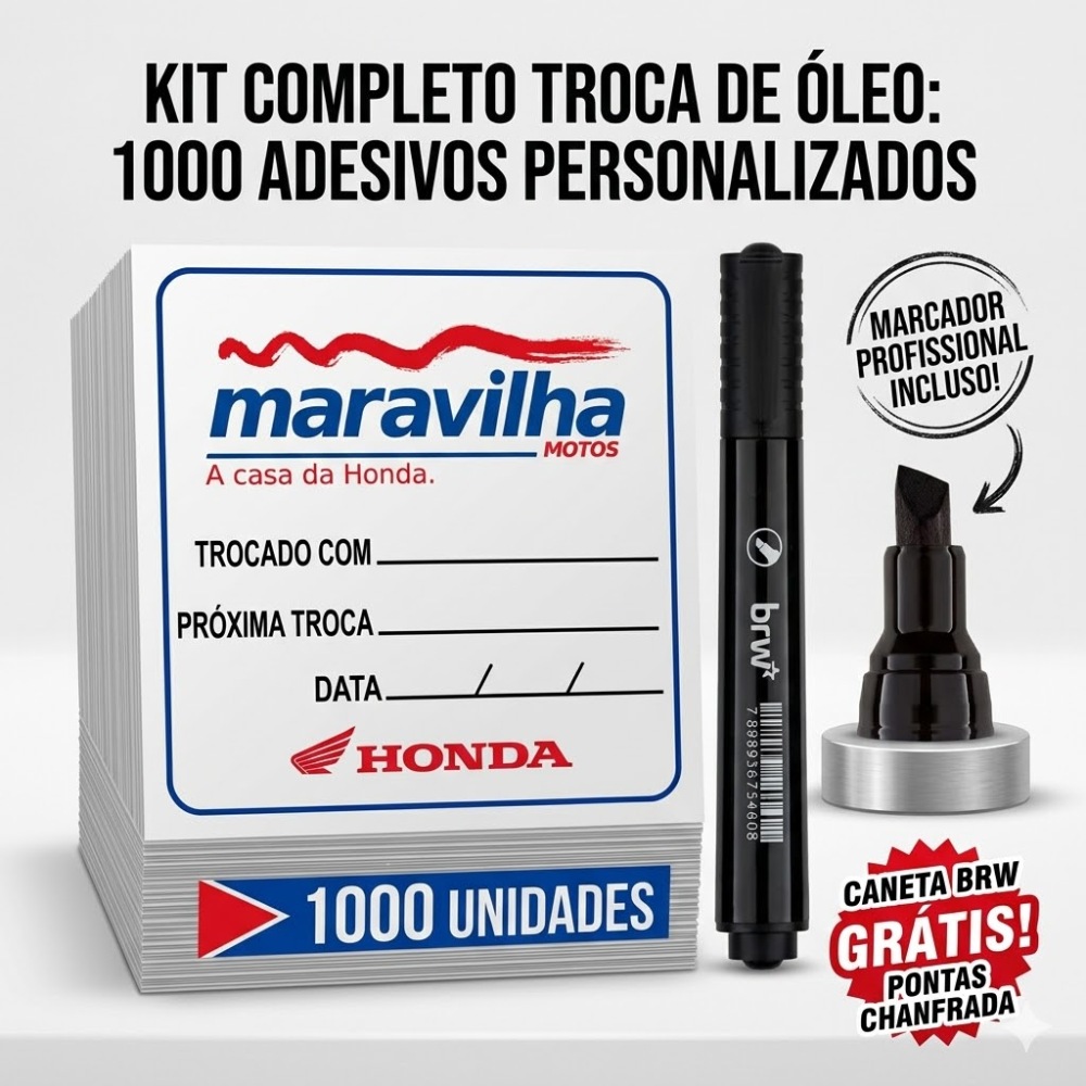 Não perca mais tempo procurando uma caneta que funcione na hora de entregar o veículo. Ao adquirir nosso pacote de 1.000 Adesivos de Troca de Óleo Personalizados, você recebe inteiramente GRÁTIS uma caneta marcadora de ponta chanfrada!